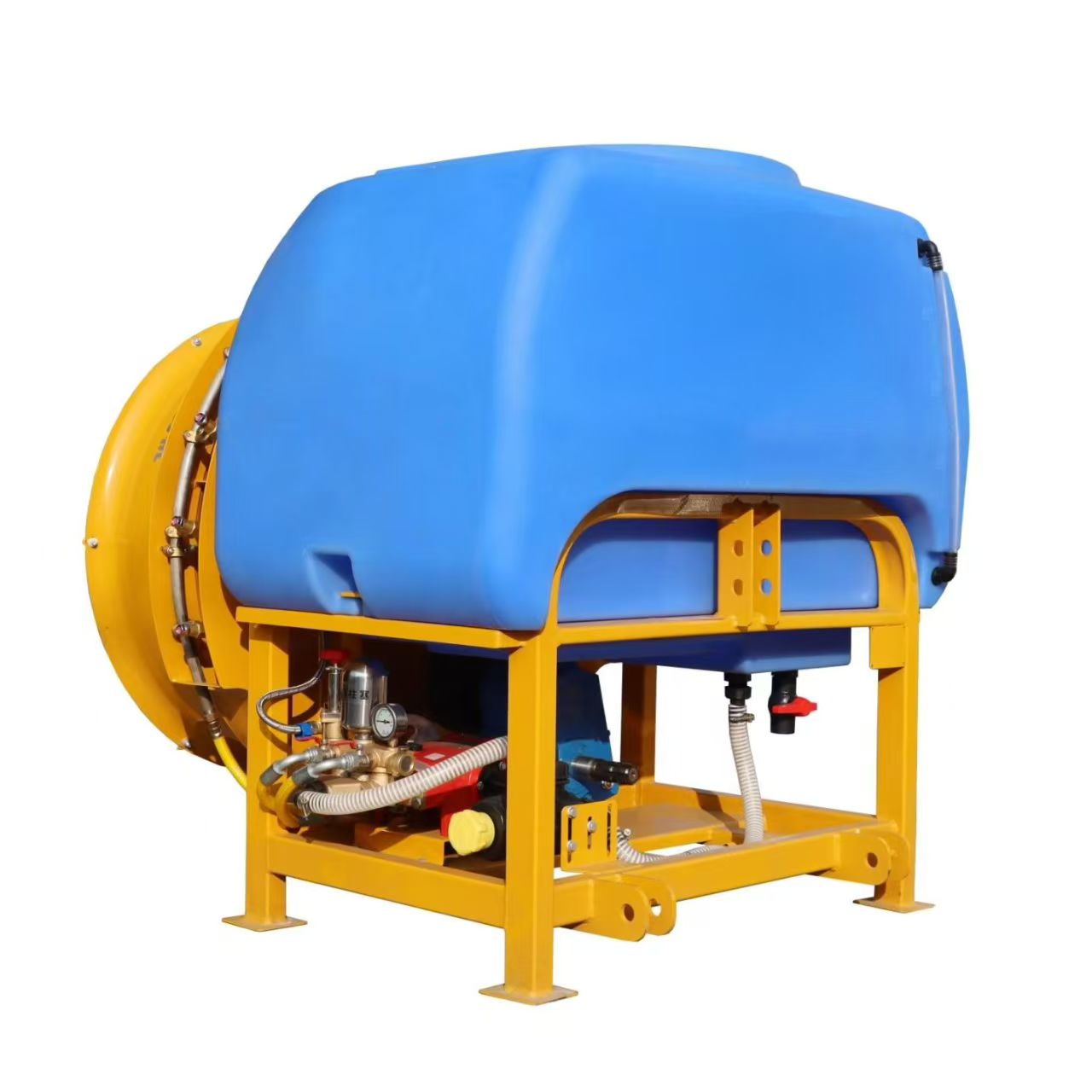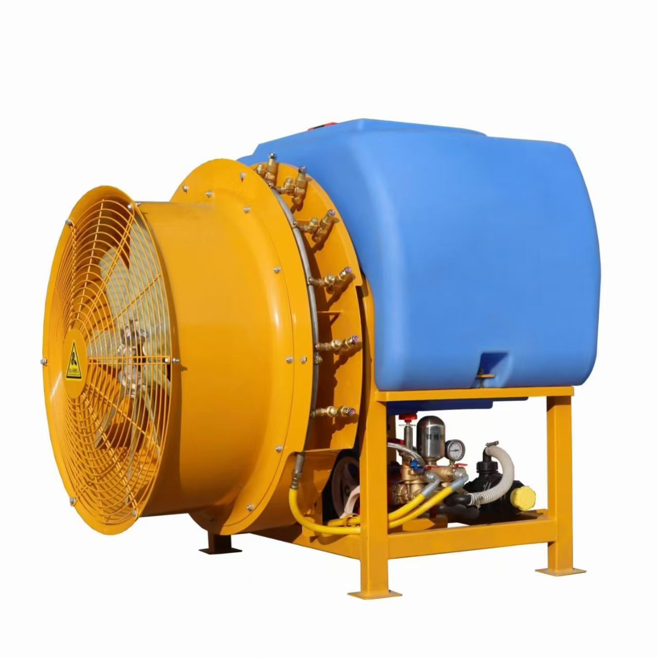 - Spray Core Components: Nagynyomású centrifugális ventilátorokkal (levegőáramlás 8000-12000 m³/h-ig), korrózióálló polietilén tartállyal (500-1000L űrtartalom) és állítható sárgaréz fúvókákkal. A ventilátor erős légfúvásokat generál a cseppek szállítására, egyenletes fedést biztosítva a levelek mindkét oldalán.
