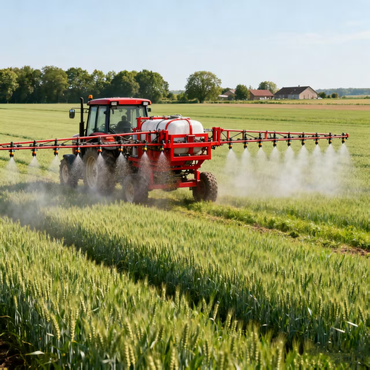 - Boom permetezőgépek: Működjön a „Direct Liquid alkalmazás” elven. A szivattyú folyadékot (peszticideket, műtrágyák vagy herbicideket) tolja a tartályból a tömlőkön keresztül a gém fúvókáin keresztül. A fúvókák a folyadékot finom cseppekké porlasztják, amelyek függőlegesen vagy enyhe szögben esnek a célnövényekre. A permetezés a permetező előremenő mozgásától függ, és a cseppek eloszlása a fúvóka távolságától és a talajsebességtől függ.